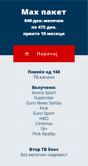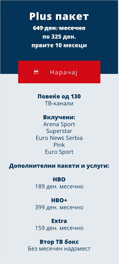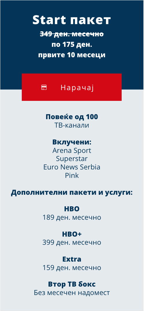 Гледајте повеќе од 150 ТВ канали на 4 ТВ-уреди, низ целата територија на Македонија.